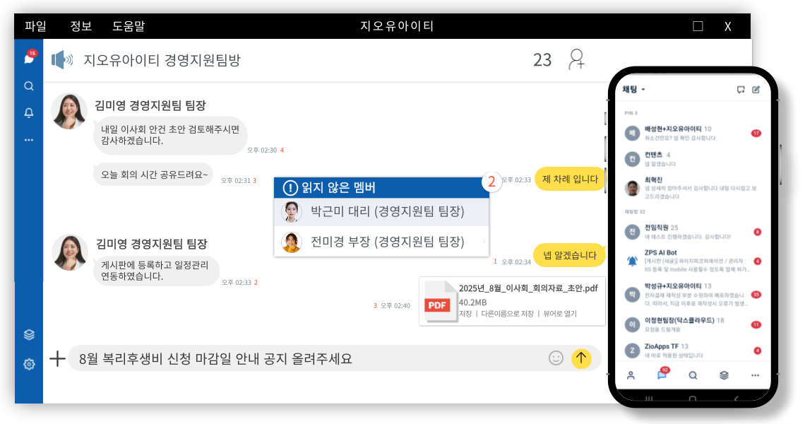 기관 메신저의 끝판왕 복지톡 AI 협업의 시작과 완성 복지톡과 함께 하세요 소개자료 받기 온라인 PT 요청 회사 체크리스트 우리회사 진단하기 자세히 보기 → 도입 전 점검사항 이것만은 꼭 확인하자 자세히 보기 → 무료방문 요청 막내 사원이 알아본다구요? 자세히 보기 → 협업의 시작과 완성 이제 더 이상 비교하지 마세요, 복지톡이면 충분합니다 실시간 소통 언제 어디서나, 바로 전달되는 커뮤니케이션 자세히 보기 → 조직기반 권한관리 조직도 연동부터, 권한설정까지, 체계적인 내부통제 자세히 보기 → 협업기능 연계성 파일 공유 및 검색, 회의록, 메모, 일정 공유 자세히 보기 → 유지보수/기술지원 전담 컨설턴트가 응답하는 빠른 기술지원 자세히 보기 → “일하는 방식까지 바꾸는 실시간 AI메신저” 긴급한 업무, 기다릴 필요없이 바로 연결하세요 업무가 달라지는 이유 소통, 협업, 기록 그 이상을 가능케하는 기능들 누가 함부로 ‘대동소이’라고 말하는가?!! 복지톡 모든것 Play Play Play Play 복지톡은 다양한 복지기관이 사용하고 있어요 각기 다른 복지기관 특성에 맞게 설정하고 유연한 사용이 가능합니다 종합사회복지관 공문작성 및 내부 승인절차가 많아 자동화가 필요한 자세히 보기 → 정신건강복지센터 내담자와 상담사의 일정조율/상담예약관리가 중요한 자세히 보기 → 노인복지관,시니어클럽 노인일자리와 자원봉사의 효율적인 운영이 필요한 자세히 보기 → 청소년복지관 학부모 만족도조사를 실시하여, 피드백 반영이 중요한 자세히 보기 → 이주배경,외국인,다문화 법률자문과 외부교육 및 강의 일정공유가 필수적인 자세히 보기 → 문화원 참여자의 정보와 지원기록을 세부관리해야 하는 자세히 보기 → 장애인복지관 외부인의 출입관리 내역이 실시간 공유가 필요한 자세히 보기 → 데이케어센터,요양 시설자원과 장비, 지원물품의 효율적인 분배가 필요한 자세히 보기 → 노인보호전문기관 학대신고와 사례대응 기록이 필수적인 자세히 보기 → 보육원, 아동보호,아동센터 아동 돌봄,급식,학습등의 체계적 관리가 돋보이는 자세히 보기 → 발달장애인지원센터 발달장애수준의 맞춤 상담과 학습결과과 중요한 자세히 보기 → 여성복지,가정,성폭력피해지원 상담부터 법률,의료 연계 대응이 단계별로 가능한 자세히 보기 → 복지톡 AI 신규 기능 생성형 AI 사용자가 자연어로 질문을 입력하면 LLM(거대언어모델)으로 바로 답변을 받을 수 있습니다 ✨ 위의 내용으로 메일 초안 작성해줘 ✨ 메시지를 보고서 형태로 편집해줘 ASK AI AI기능으로 요약된 내용을 확인하고추가 프롬프트로 원하는 답변을도출할 수 있습니다 ✨ 작년 고객 요청사항의 차이점은? ✨ 위의 대화내용을 요약해줘 복지톡 AI 메신저 기관에 특화된 AI 메신저 원활한 소통과 매끄러운 업무흐름을가장 쉬운 협업 공간, 복지톡에서 경험해보세요 Play 타사에서 안되던 기능이 복지톡에서는 쉬웠어요 성공사례 더 많이 보기 → 협업의 시작과 완성 결국은 복지톡 소개자료 받기 온라인 PT 요청 이미 300여개+ 회사가 복지톡으로 업무역량을 강화했어요 고객사 자세히 보기 → 지금 혼자서 인터넷으로만 알아보신다구요?결정권자와 현장에서 직접 확인하세요 제안서 요청 온라인PT요청 유튜브로 한 눈에