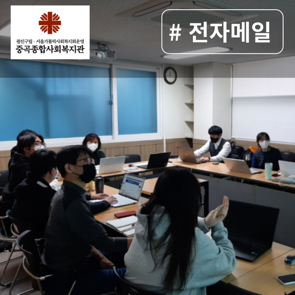 중곡사회종복지관에서는 ‘복지왕’ 그룹웨어의 이메일 기능을 적극 활용하며 업무 효율성을 높이고 있다.
